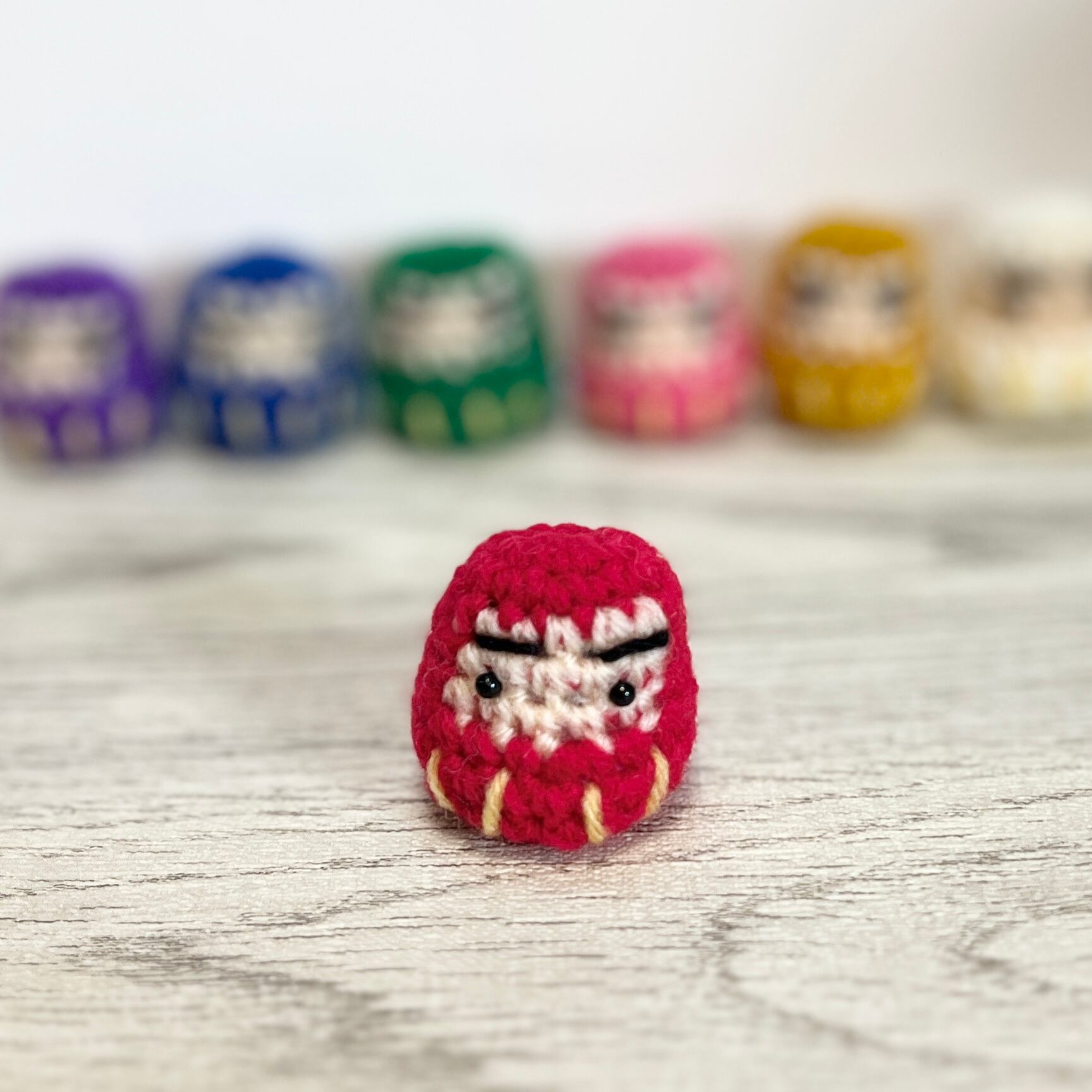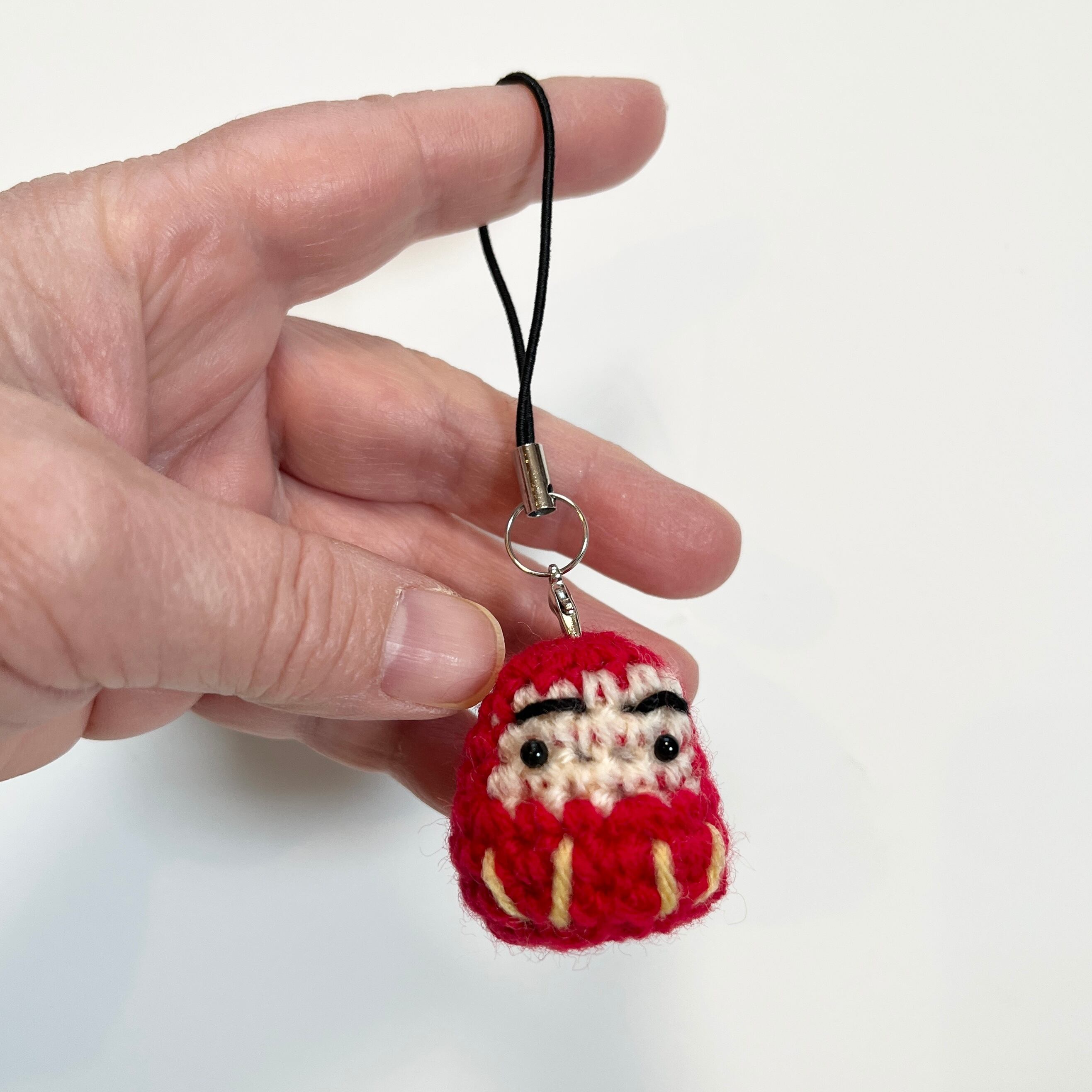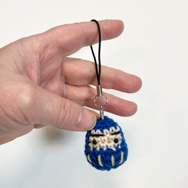 ひとつひとつ丁寧に編んだ、小さなだるまのストラップです。