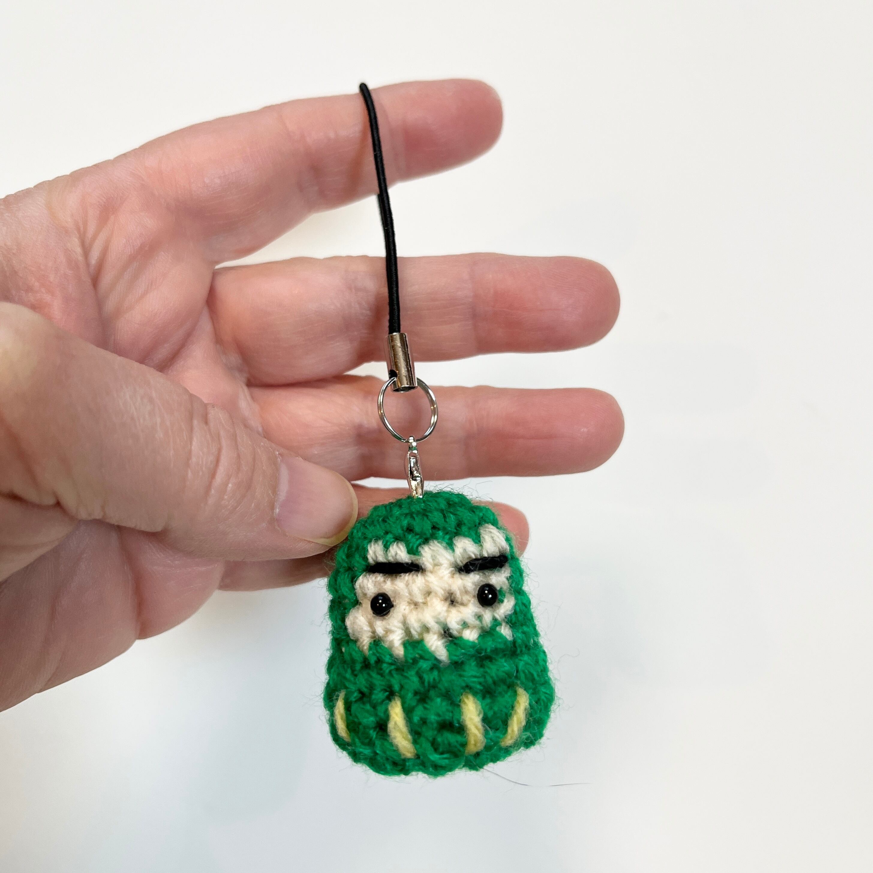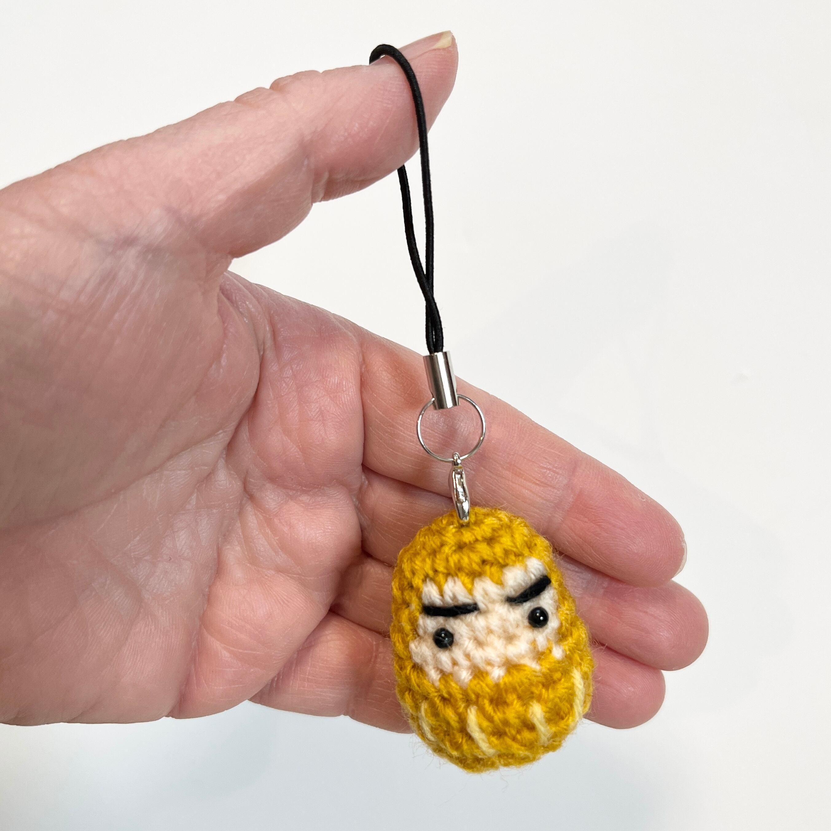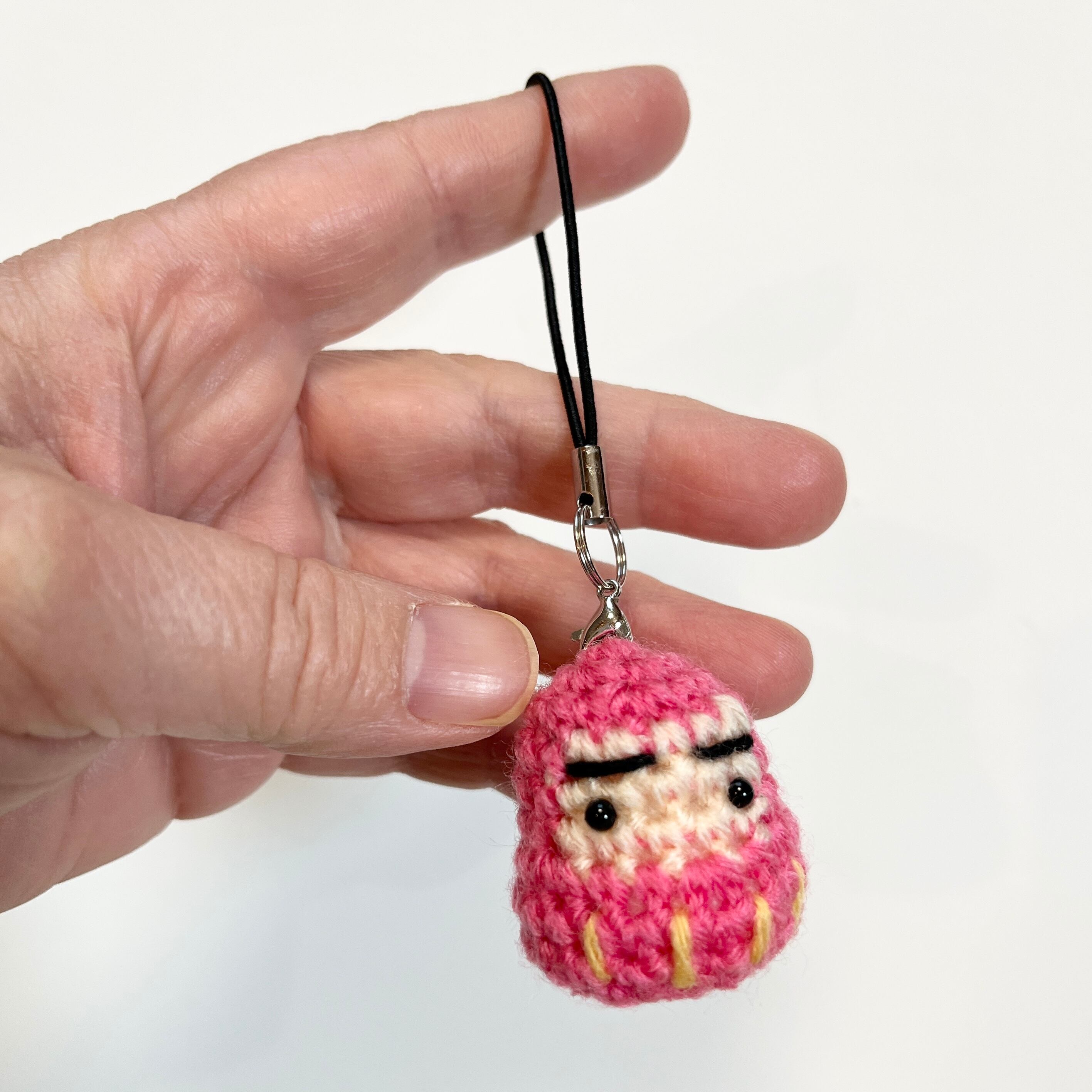ひとつひとつ丁寧に編んだ、小さなだるまのストラップです。