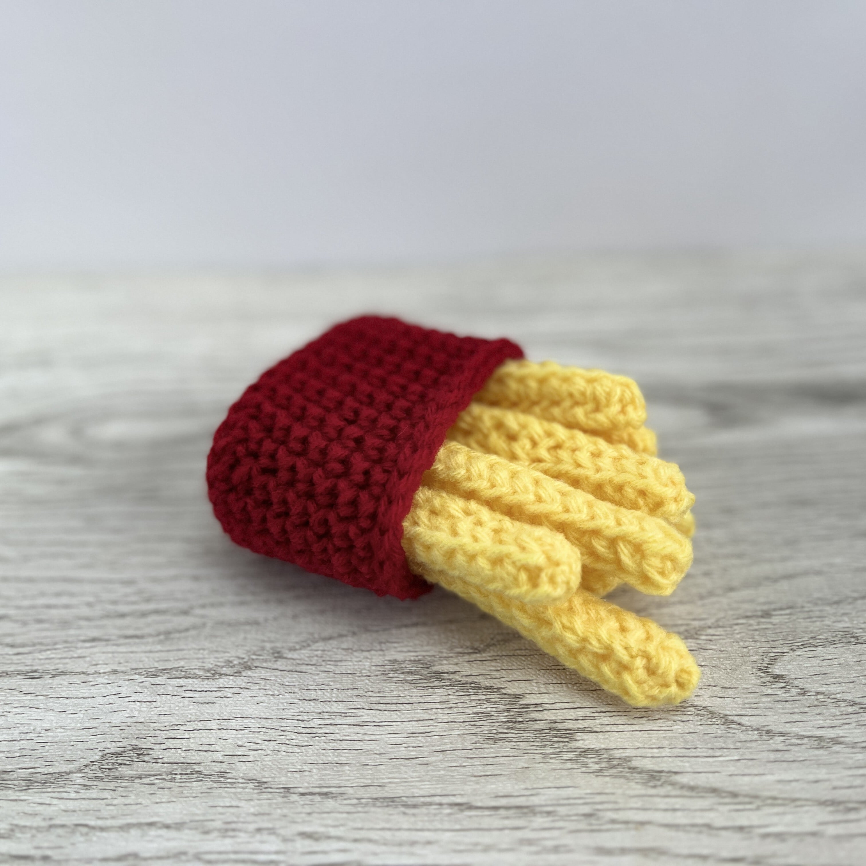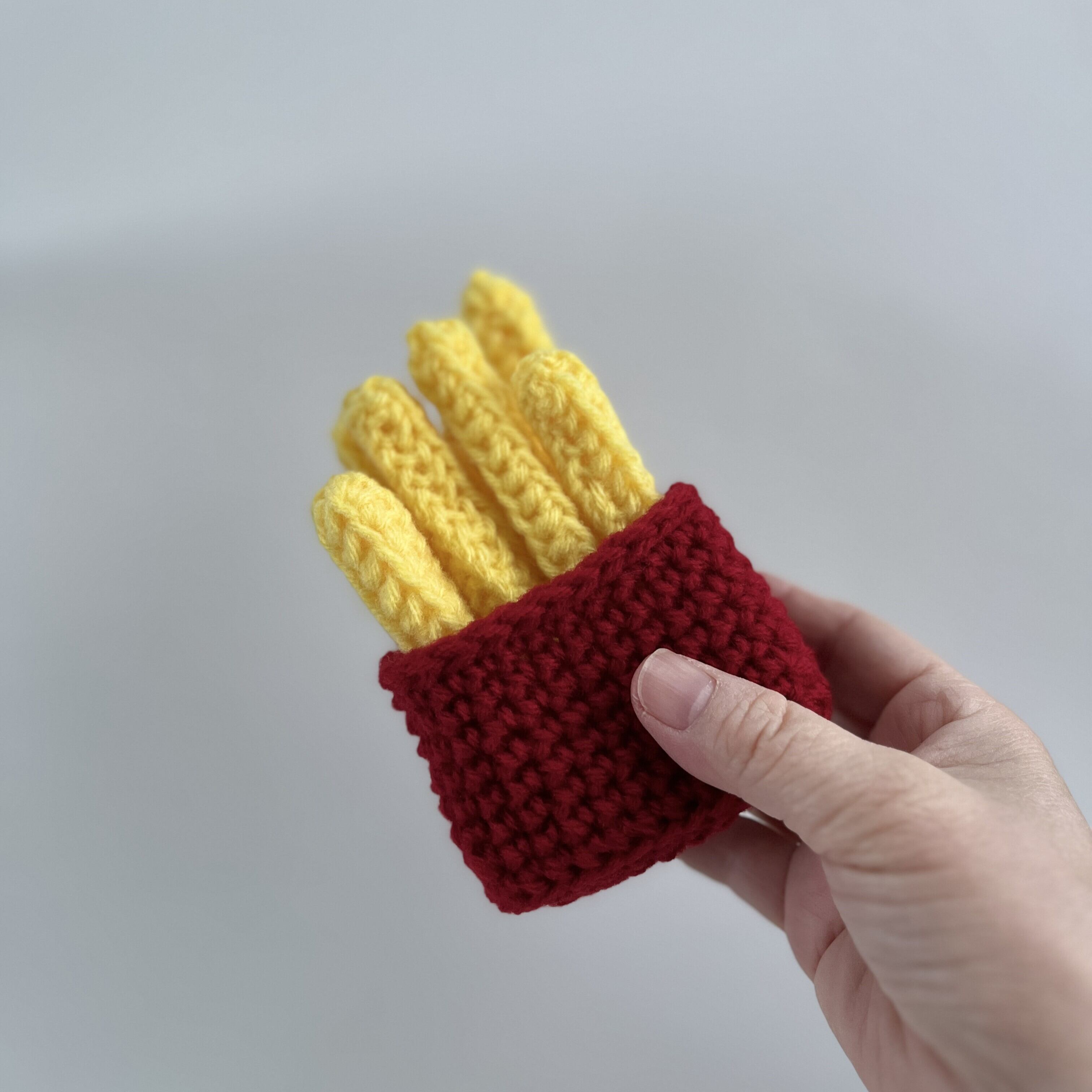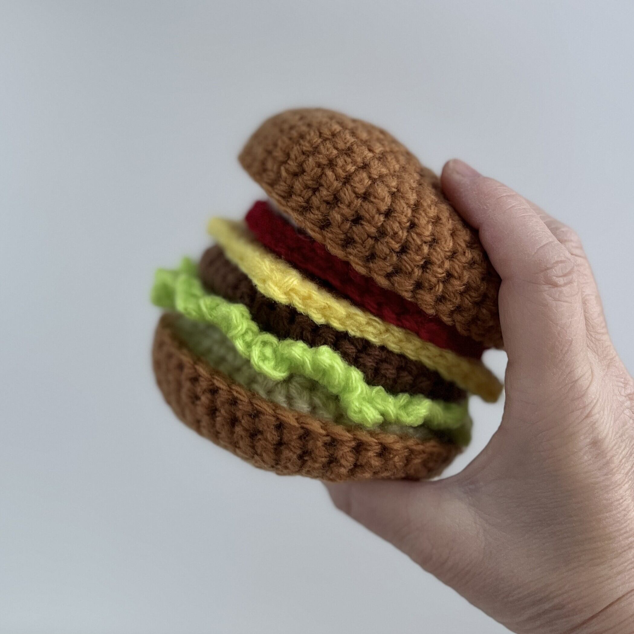 抗菌仕様のアクリル毛糸で作ったハンバーガーとポテトのおままごとセットです。